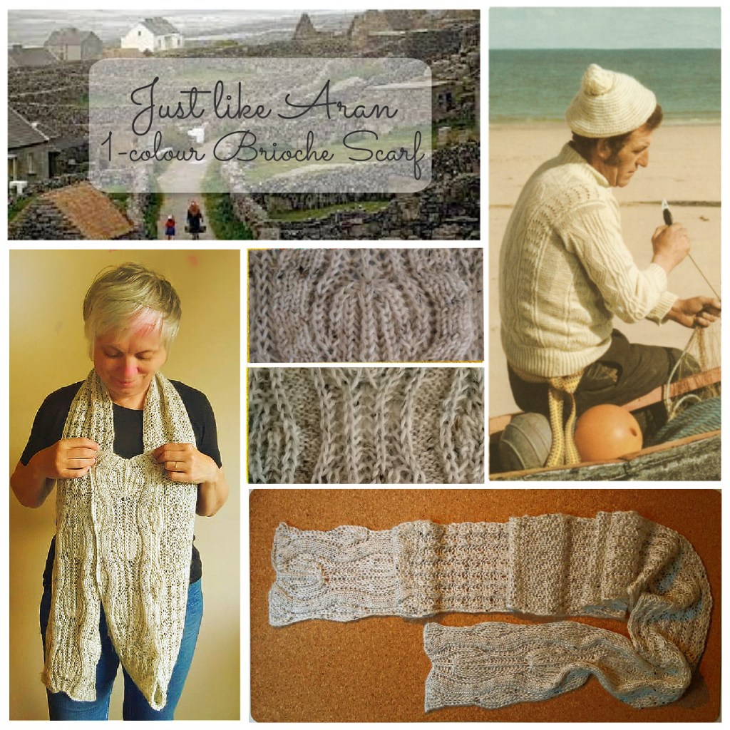 This pattern is available as a free download and in both English and German. It is designed to bring total beginners of Brioche through all the steps of mastering this stitch by appearing like traditional Aran knitwear – yet, it is entirely worked in one-colour Brioche. I designed it in the traditional Irish Aran “patchwork style”, which splits the scarf into 3 difficulty levels. This offers you the option to focus on a stitch of your choice, or to combine in a manner which you love best.