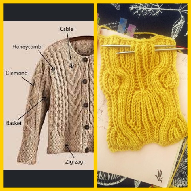 The fabric is equally beautiful in a solid, traditional “Aran tweed colour” such as here or in a variegated yarn (a yarn which changes colour within the strand). Please remember to get in touch anytime you would like some knitting support!