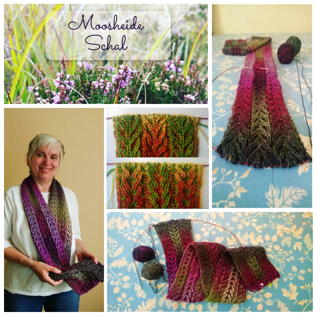 This design matches the “wee heathers scarf / Moosheide Schal” and the pattern is available in small, medium and large. The pattern is available in English at present and will be published in German soon, so please stay posted!