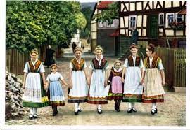 I grew up in the town of Kassel in the state of Hessen, a German area where the Brothers Grimm wrote their fairy tales, and where half-timbered houses lean towards each over in narrow cobbled steets. Hessen also has one of the oldest Trachten traditions in the country, and the largest range of costume styles; my immediate area alone is home to more than 25 distinctly different styles of costume.